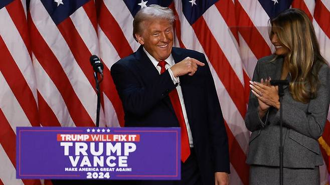 ▲ 플로리다 팜비치서 대선 승리 선언하는 트럼프 전 대통령