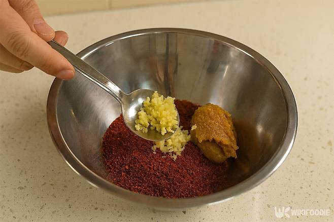 양념장은 고추장 없이 고춧가루, 된장, 새우젓, 국간장을 배합해 만든다. 고추장은 국물을 텁텁하게 만들 수 있어 배제한다.