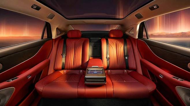 실내는 5인승 구성으로, 2열에는 무중력 시트와 6.6리터 냉장고까지 탑재되며, 뒷좌석 탑승자 중심의 쇼퍼드리븐 차량 성격이 뚜렷하다.