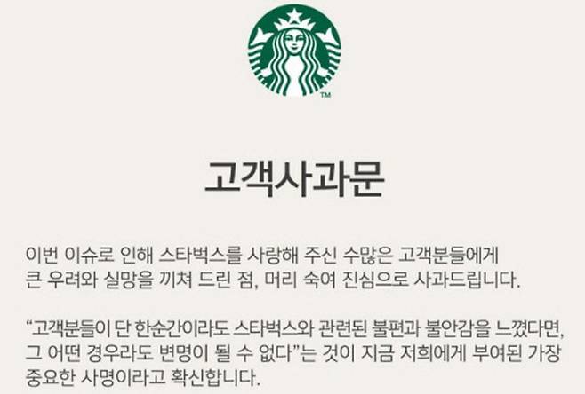 이게 사실 대기업에서 이뤄졌다고 믿기 힘들 정도로 부실하고 미흡한 대응이었는데 일단은 지금 스타벅스 어플에도 공식 사과문이 올라와있어요.
