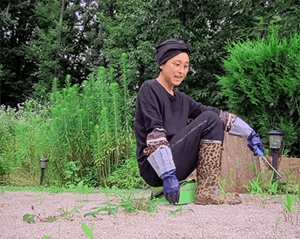 텃밭에서 채소를 수확하며 조용한
