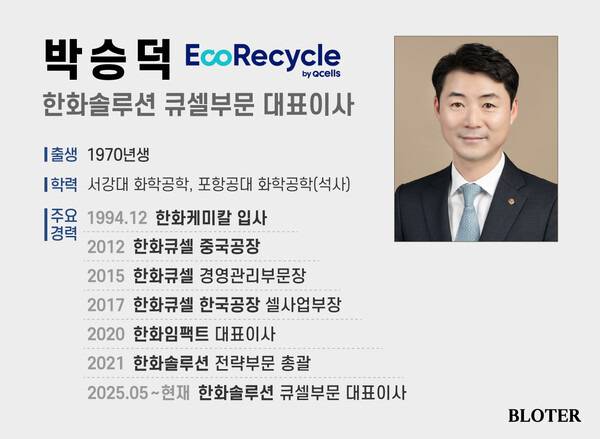 한화솔루션이 박승덕 전략부문 전략총괄을 큐셀부문(이하 한화큐셀) 대표이사로 선임한다. 박 대표는 김동관 부회장의 측근 인물로 사업 전략 수립에 능통한 ‘전략통’으로 꼽힌다. 또 입사 이후 태양광 초기 사업을 다진 멤버다. 최근 글로벌 태양광 시장이 급변하는 상황에서 사업 전략과 제조의 유기적 협업을 담당할 적임자로 평가받는다.