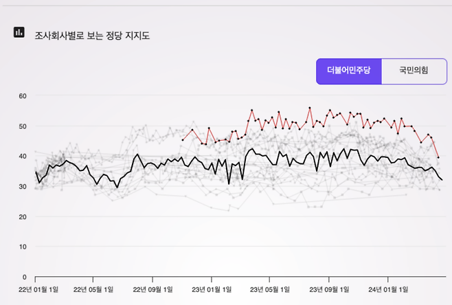 “여론조사꽃 조사에서는 민주당이 한 번도 40% 밑으로 떨어진 적 없다”는 주장은 어떤가.