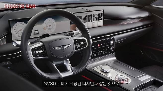 스티어링 휠 디자인은 G80 스포츠 패키지와 GV80 쿠페와 동일한 디자인을 공유하고 있다. 가죽으로 감싼 혼 커버와 스티치, 타공 디자인이 고급스러운 느낌을 준다.
