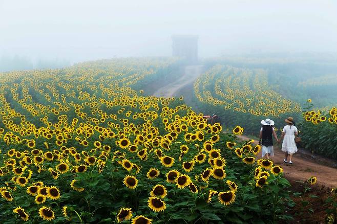 해바라기 사이로 난 오솔길을 따라 걷다 보면, 금방이라도 그림 속으로 빠져들 것 같은 착각에 빠질지도 모릅니다.