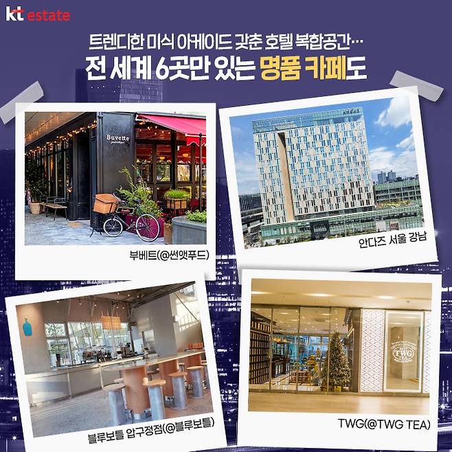 그 내부에는 아코르 그룹의 프렌치 럭셔리 호텔 ‘소피텔 앰배서더 서울’을 비롯해 스마트 오피스, 다채로운 리테일∙상가시설이 자리 잡고 있는데요. 무엇보다 KT 및 BC카드의 빅데이터를 분석해 인근의 방이먹자골목이나 롯데타워와는 또 다른 콘셉트로 3040 여성과 비즈니스∙가족 모임이 가능한 고급 F&B 매장 등의 MD를 구성한 점이 특징입니다.