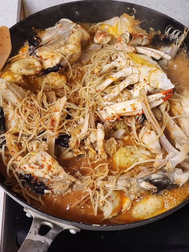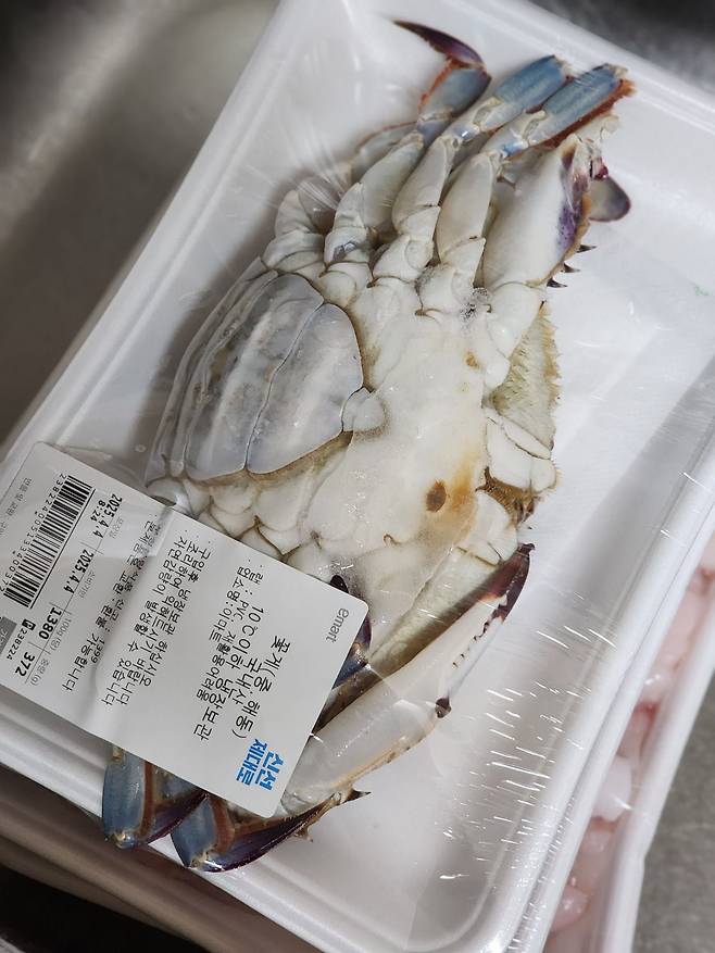 꽃게도 한 마리만 데려와서 다듬어 줍니다.