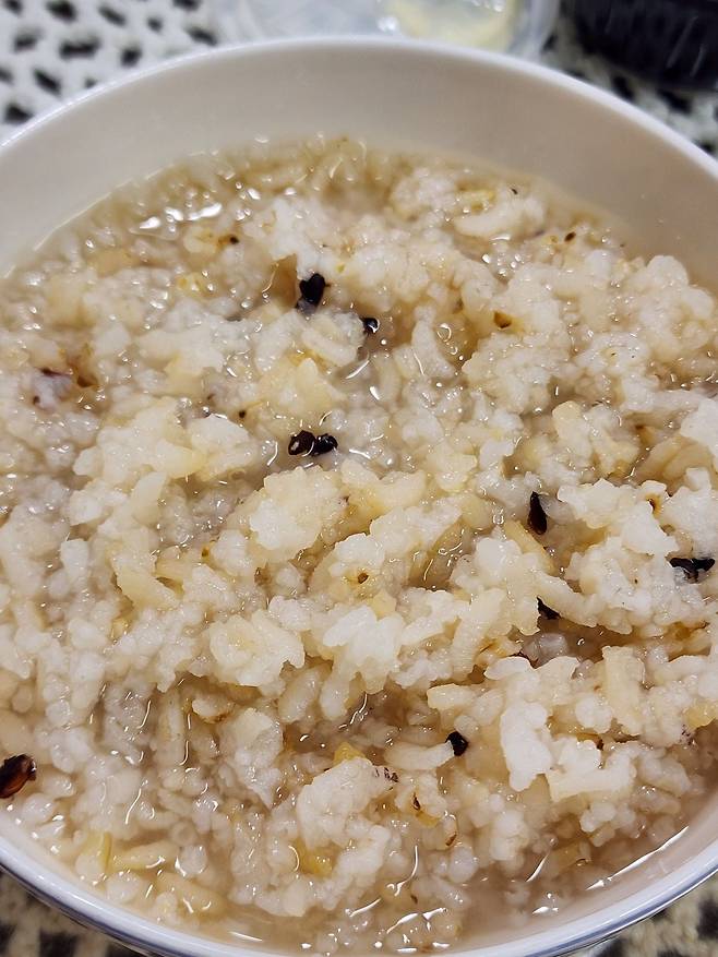 누룽지를 끓여서 떠먹으면서 먹습니다.
