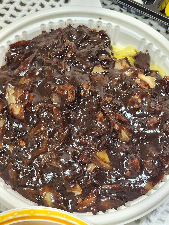 예전에 어느 지방인가 가서 잡채밥을 주문하니 짜장이 함께 나왔던 기억이 나서 짜장도 비벼 먹어 봅니다.