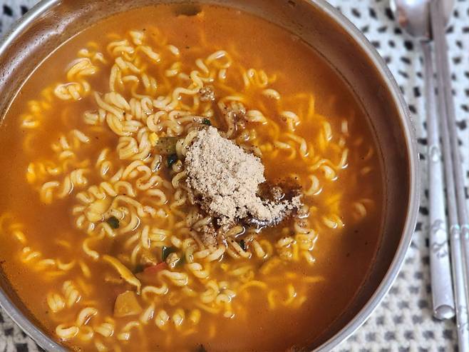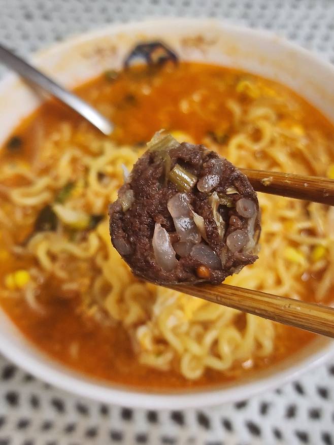 열라면의 고춧가루 풋내와 진짬뽕을 맛의 조화가 괜찮았습니다.