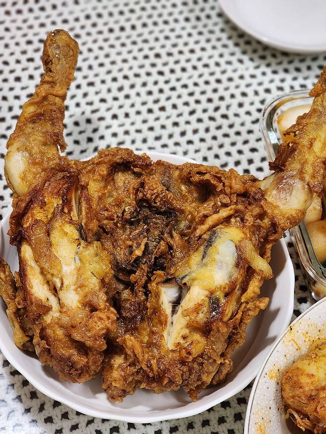 어릴 적에 아버지가 사다 주신 봉지 통닭이 생각났습니다.