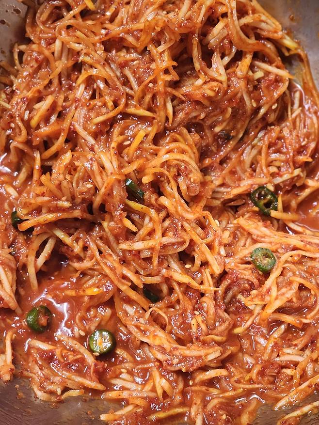 완성했는데 새로 산 청양초 고춧가루가 너무 매웠어요.