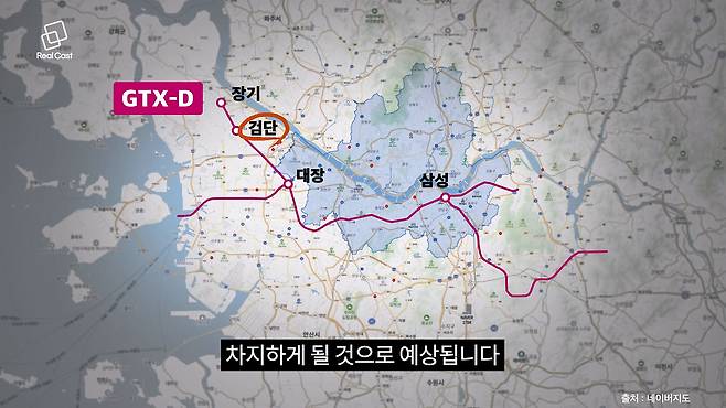 현재까지의 구상을 기준으로 미래 교통은 검단이 우위에 있습니다. GTX-D 사업이 구상대로 진행될 경우에는 확실한 우위를 차지하게 될 것으로 예상됩니다. 강남, 삼성, 잠실에 직행하는 노선이 생기는 겁니다.