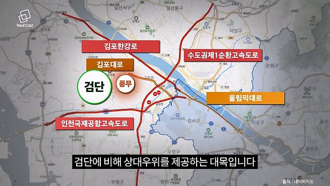 차량을 이용해도 마곡까지 20분대에 주파할 수 있습니다. 수도권제1순환고속도로, 김포한강로, 인천국제공항고속도로 접근성이 뛰어나다는 점도 검단에 비해 상대우위를 제공하는 대목입니다.