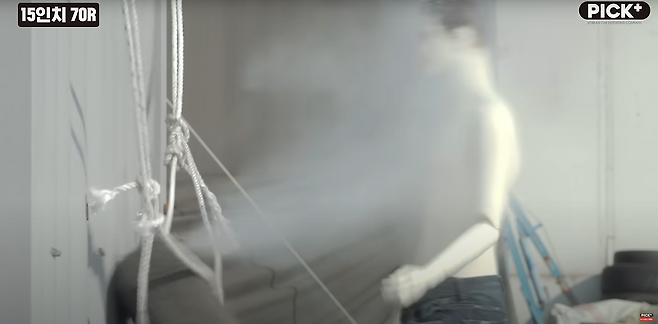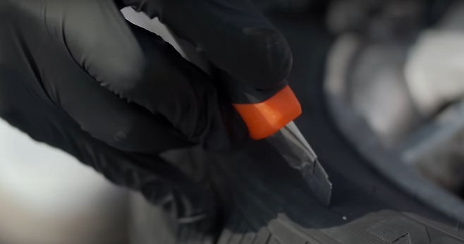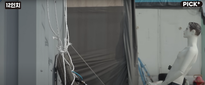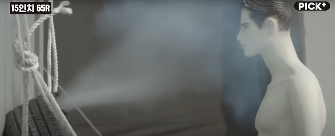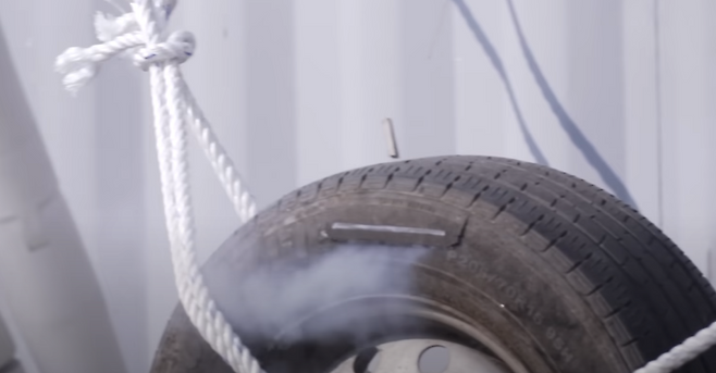 12인치, 15인치, 1톤 트럭 타이어 대상으로 인위적으로 타이어 옆면에 손상을 발생시킨 후 실험을 해보았습니다. 공기가 눈에 보이지 않는 만큼, 타이어 앞에 마네킹을 세워서 지켜보았습니다.
