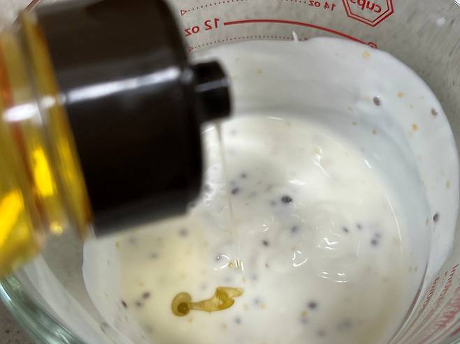 마지막으로 꿀을 소량 넣어 주세요. 요거트에 따라 단 맛이 첨가된 경우도 있어, 맛을 보시고 꿀의 양을 조절하여 넣으세요.