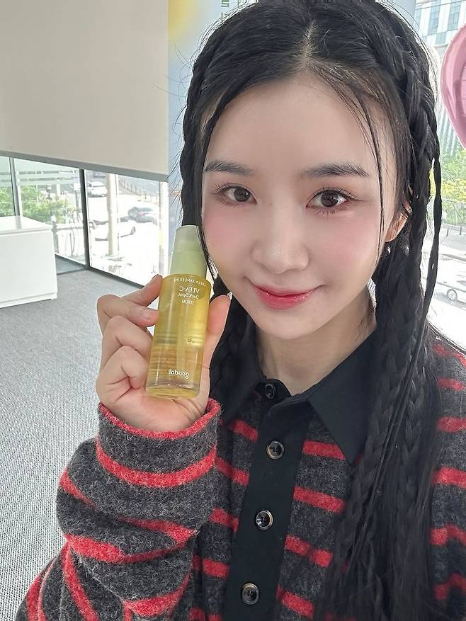 헤어스타일은 두 갈래 브레이드 스타일로, 사랑스럽고 유쾌한 이미지를 극대화했다. 단정하면서도 발랄한 인상을 주며, 니트의 스트라이프 패턴과 자연스럽게 어우러져 차오루만의 독보적인 셀카룩을 완성했다. 자연스러운 미소와 함께 카메라를 응시하는 모습은 환한 피부 톤을 더욱 강조하며 보는 이들까지 기분 좋게 만든다.