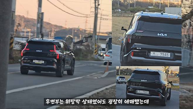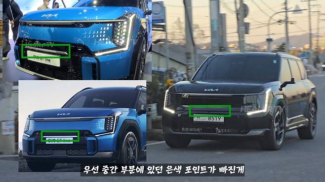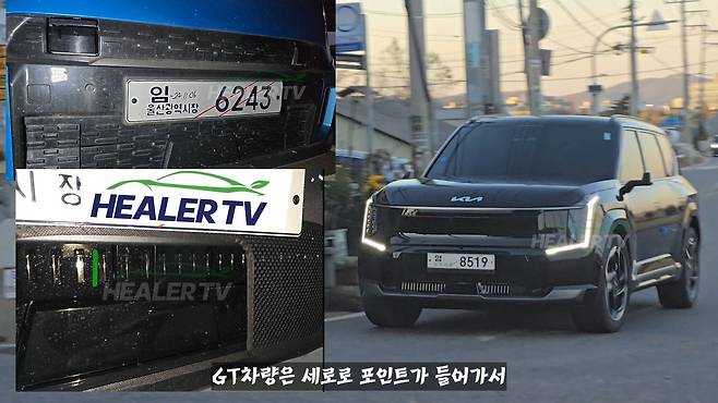 기아의 EV9 GT 모델의 실물이 모습을 드러냈다. 힐러티비가 포착한 모습을 보면 위장막 상태일 때 기대했던 변화 사항 중 일부가 실제로는 반영되지 않은 것으로 확인됐다.