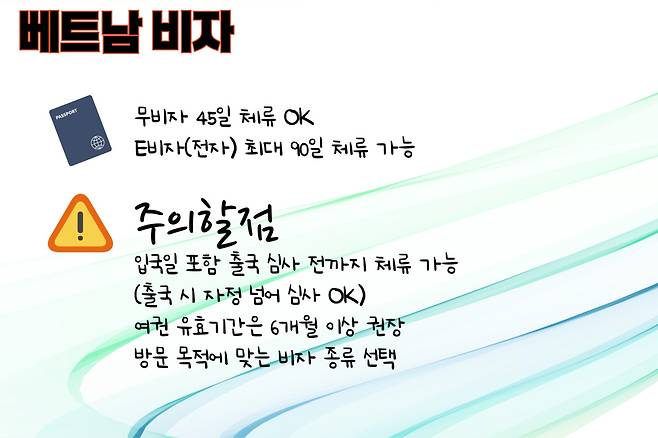 그러나, 45일 이상 체류하거나 복수 입국이 필요한 경우, 전자비자(e-Visa)를 신청해야 하는데요. 신청 방법은 '베트남 이민국 공식 웹사이트'에서 온라인 신청 후 약 3~5일 소요되며, 최대 90일까지 체류할 수 있습니다.