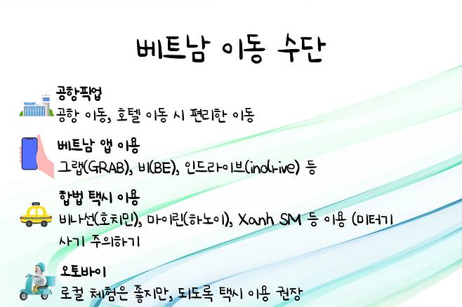 베트남에는 합법 택시를 이용하는 것이 안전합니다. 공항이나 주요 관광지에서 택시를 쉽게 찾을 수 있으며, 미터기를 사용하지 않는 택시는 피하는 것이 좋습니다.