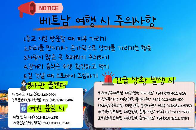 베트남 여행 시 주의해야 할 사항이 몇 가지 있는데요. 안전하고 즐거운 여행을 위해 미리 확인해 두면 도움이 될 수 있습니다.