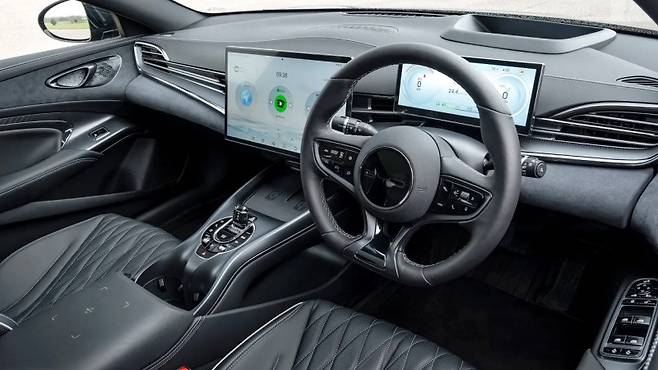 실내는 스포티한 느낌을 주며, 다인오디오 사운드 시스템은 뛰어난 음질을 제공합니다. 하지만, 150kW의 최대 충전 속도는 경쟁 모델 대비 느린 편이며, 실제 충전 속도도 기대에 미치지 못할 수 있습니다. 또한, 3.0mi/kWh의 전비는 테스트 차량 중 가장 낮은 효율성을 보여줍니다.