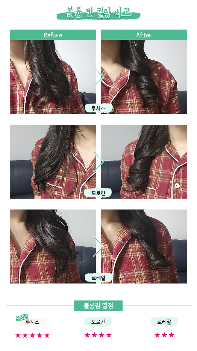 루시스 헤어 에센스는 볼륨감을 더해주고 컬링 유지까지 잘 되어 에디터의 푸석한 모발 걱정뿐만 아니라 축 처지는 모발의 걱정까지 덜어주어 좋았던 제품이다.