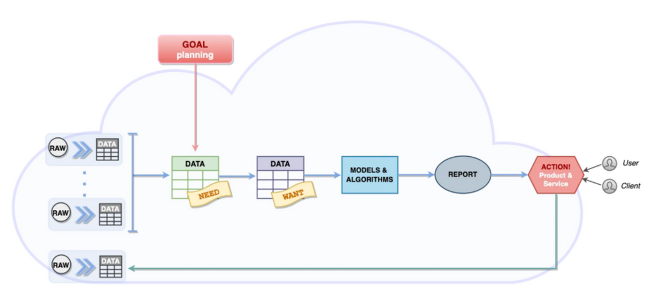 고액 연봉을 받는 데이터 사이언티스트는 자신이 무엇을 하는지 정확히 파악하고 일을 시작합니다. 데이터 사이언티스트의 역할은 단순히 예측 모델을 만드는 것뿐만이 아닙니다. 프로젝트를 위한 문제 정의부터 데이터 분석, 예측 모델 생성, AWS 클라우드 서비스를 이용해 자동화를 만드는 것까지 담당합니다.