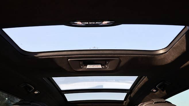 시승차량은 6인승이다. 그에 따라 2열 독립 시트가 적용되었고, 전동식 리클라이닝이 가능하다. 양측 창문에는 전동식 롤러 블라인드가 적용되었고, 앞뒤 선 블라인드도 2열 좌석에서 조작할 수 있다. 편의 기능으로 2열 2존 독립 공조와 열선 시트가 채택되어 있다. 독립시트 구성이라서 컵홀더는 암 레스트와 별도로 중앙부에 구현된다. 공간은 더할 나위 없이 여유롭고, 측면과 파노라마 선루프를 비롯해 넓게 트여있는 시야 개방감이 훌륭하다. 2열 도어가 크고 묵직한데, 소프트 클로징 기능 역시 기본이다.