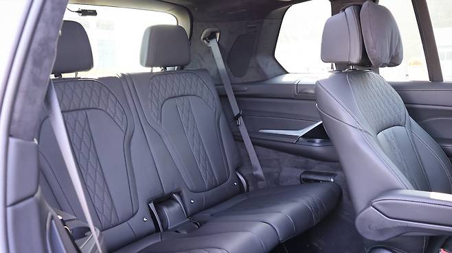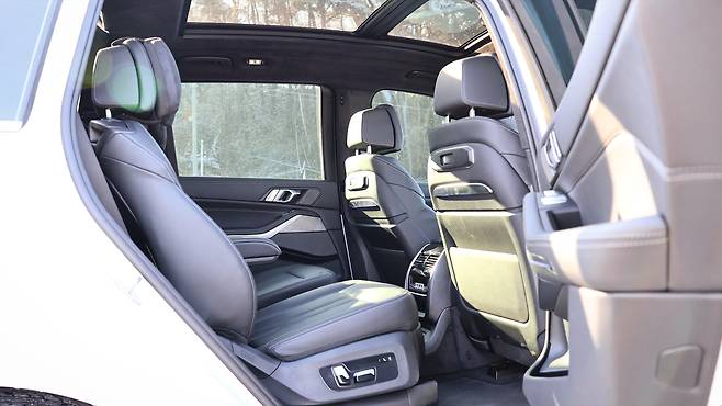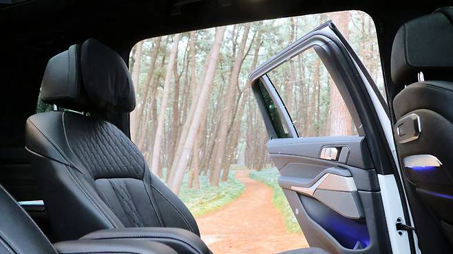플래그십 SUV 다운 고급감도 확실하다. 특히 DPE 트림에 제공되는 글로스 인테리어 트림은 중후하면서도 화려한 소재감이 특징이다. 크리스탈 기어 레버나 i드라이브 버튼은 정교함이 매력, 스포츠 레더 스티어링 휠은 편안한 그립감을 제공한다. 천장 전체는 알칸타라 헤드라이닝으로 안락하게 마감했다. 한편, 실내 전체를 장식하는 앰비언트 라이트는 주행 모드와도 연동된다. 디스플레이나 HUD 테마도 함께 변경되어 분위기를 반전시킨다. 1열 메리노 가죽시트는 포근한 탑승감을 제공하며, 통풍 열선은 물론 안마 기능까지 지원한다.
