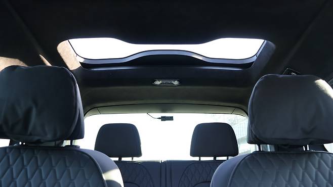 2열 시트 어깨 부근의 레버를 당기면 3열 좌석에 쉽게 승차할 수 있다. 3열 시트의 경우 안장 높이가 다소 낮지만, 성인이 탑승할 수는 있는 수준이다. 충전 포트나 컵홀더, 3열 선루프, 3열 독립 공조와 열선 등 편의 장비까지 빼놓지 않았다는 점이 특징이다. 트렁크는 상하분리형으로 위아래 모두 전동식으로 작동된다. 러기지 보드로 실내 공간이 분리되었고, 만약 3열 시트를 평상시에도 접는다면 롤러 스크린 적용이 가능하다. 2,3열 시트는 모두 전동으로 펴고 접을 수 있고, 매트 아래 잔여 공간도 넓다. 다만, 2열 독립 시트는 가동 범위가 제한적이다.