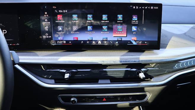 실내 디자인은 간결하고 여유가 느껴진다. 12.3인치 디지털 클러스터와 14.9인치 디스플레이가 병렬로 배치되며, 제스처 컨트롤을 지원한다. BMW라이브콕핏 프로페셔널은 클러스터의 다양한 레이아웃과 인포테인먼트 설정이 가능하며, 전방 카메라 화면을 실시간으로 송출할 수 있다. 각종 차량 설정 기능은 물론, 공조장치 조작 패널도 터치 방식으로 통합된다. 센터페시아에 남아있는 버튼은 비상등과 성애 제거, 그리고 볼륨 다이얼이 있다. 변속기 토글 레버 타입, 주행모드와 에어 서스펜션 조작 버튼 정도가 센터 콘솔에 남는다.