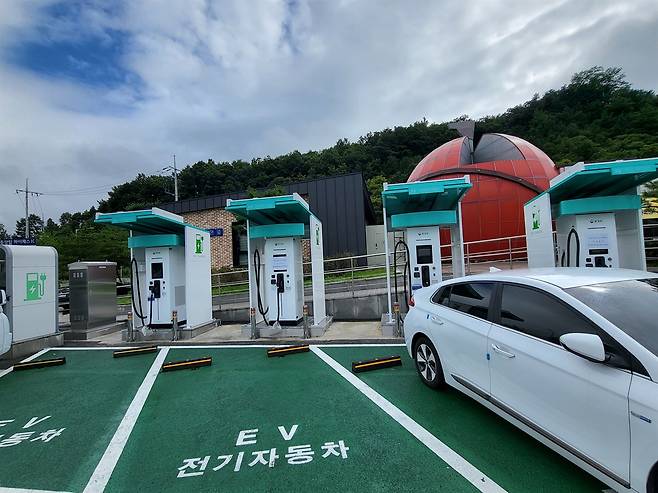 | ▲ 고속도로 휴게소의 급속 충전기 정부는 2025년까지 고속도로 휴게소마다 초급속 충전기를 15기 이상 설치할 계획이다. |