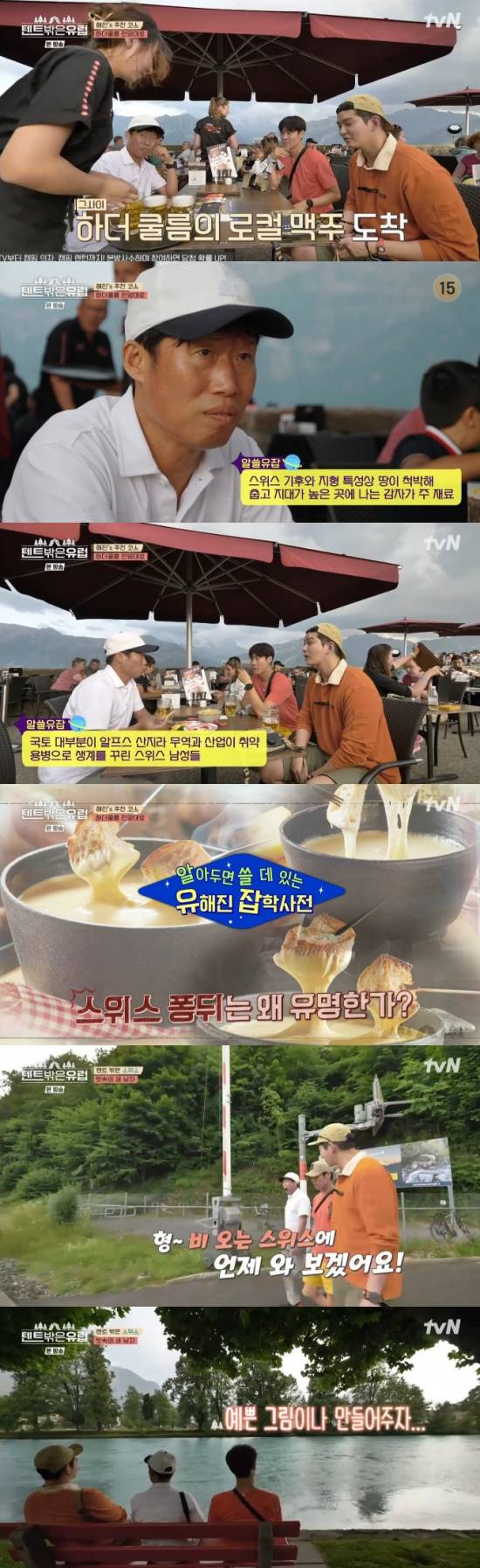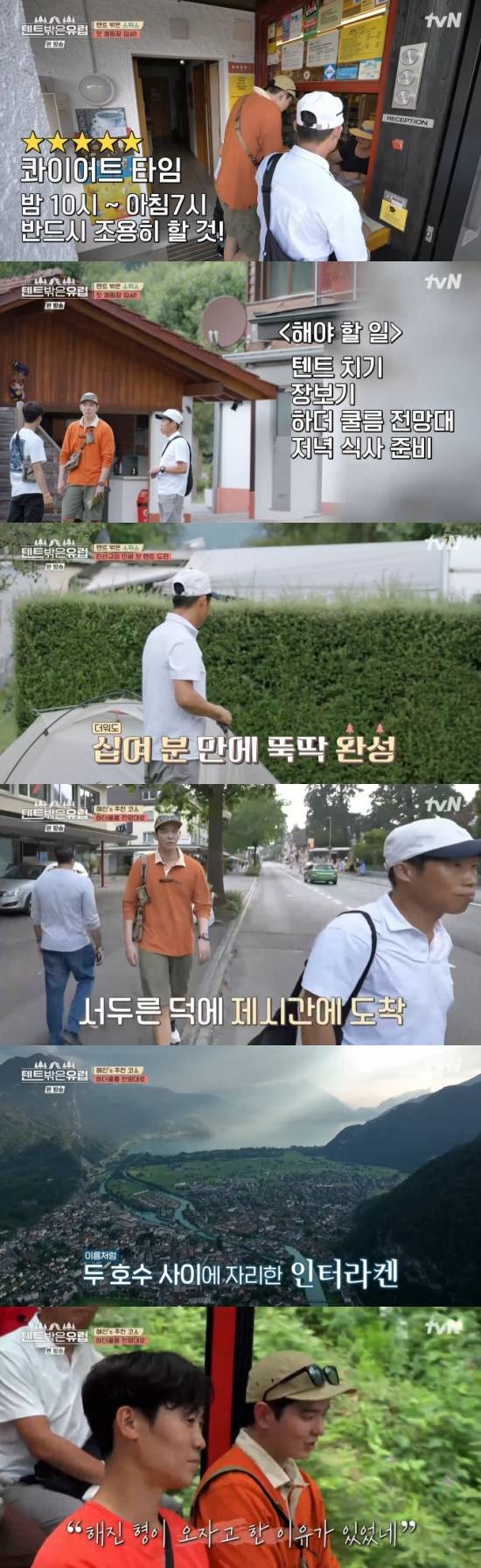 3일 첫 방송된 tvN '텐트 밖은 유럽'에서는 유해진, 진선규, 윤균상이 스위스로 떠난 장면이 전파를 탔다.