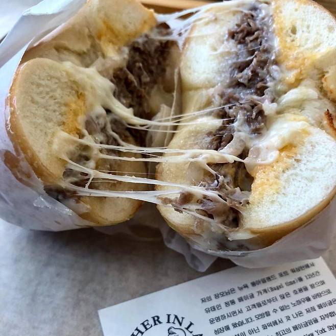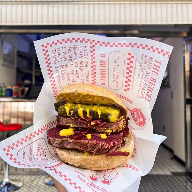 100년 전통의 영국 브릭레인 베이글 가게의 솔트 비프 베이글을 재현한 곳.