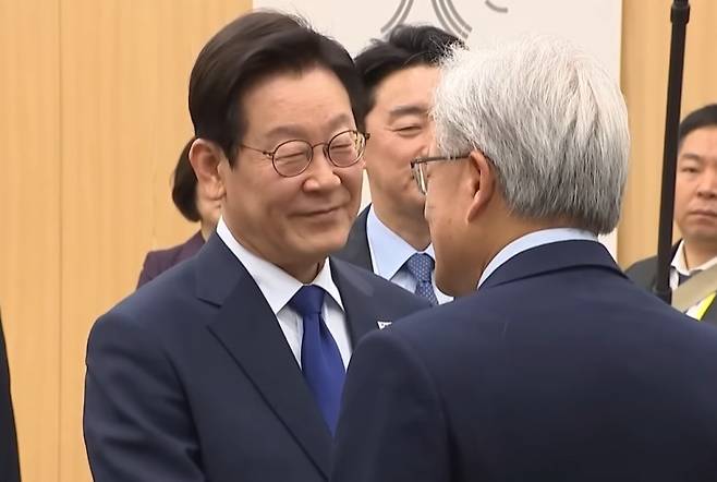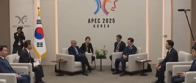 하루 뒤인 10월 31일에는 에이펙(APEC)이 열리는 경주로 날아가 이재명 대통령과 접견했습니다. 이 자리에는 젠슨황 CEO, 이재용 회장, 정의성 회장을 비롯해 SK 최태원 회장과 네이버 이해진 의장이 함께 참석했습니다. 이 자리에서 젠슨 황 CEO는 이재명 대통령을 공식 접견하며 한미 AI 협력 방안을 발표했습니다. 이재명 대통령은 접견장에서 전날 밤 젠슨 황이 한국 기업 총수들과 격의 없이 만난 '치맥 회동'을 직접 언급하며 환영했습니다.