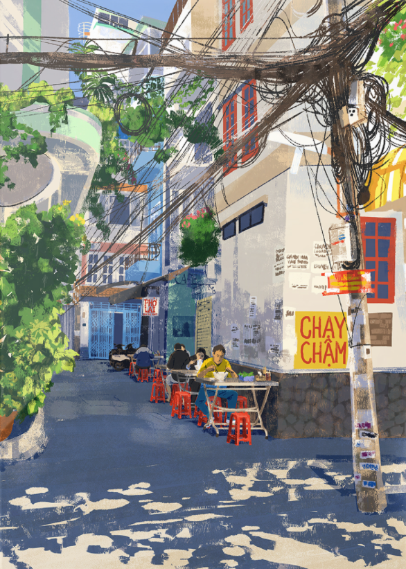 골목의 노상 음식점을 그린 ‘앨리 누들 숍(Alley Noodle Shop)’이다. 필리핀 마닐라의 다니엘 팅쿵코(Daniel Tingcungco) 작가의 작품으로, 그림 속 남자 앞에 앉아 함께 국수를 먹어야만 할 것 같다.