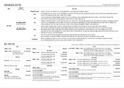 GV70 페이스리프트는 2.5리터 가솔린 터보와 3.5리터 터보 모델로 구성되어 있으며, 전반적인 출력과 효율이 개선되었습니다. 특히, 고속 주행 시 묵직한 안정감과 즉각적인 응답성은 운전의 즐거움을 더합니다. 전자식 사륜구동 시스템은 다양한 노면 환경에서도 안정적인 주행 성능을 제공하여 운전자에게 자신감을 선사합니다. 첨단 운전자 보조 시스템(ADAS)을 탑재하여 안전성을 높였으며, 패밀리 SUV로서의 역할도 완벽하게 수행합니다.