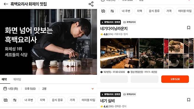 또한 '캐치테이블' 앱에서는 현재 바로 예약 가능한 흑백요리사 식당 리스트가 바로 나오기 때문에 더욱 편리하게 이용할 수 있다.