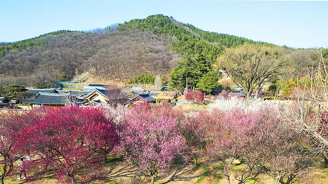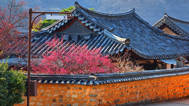 이 마을의 봄은 홍매화로 시작됩니다. 다른 꽃보다 조금 이르게 피어나면서, 아직 차가운 공기 속에서도 먼저 색을 만들어내요.