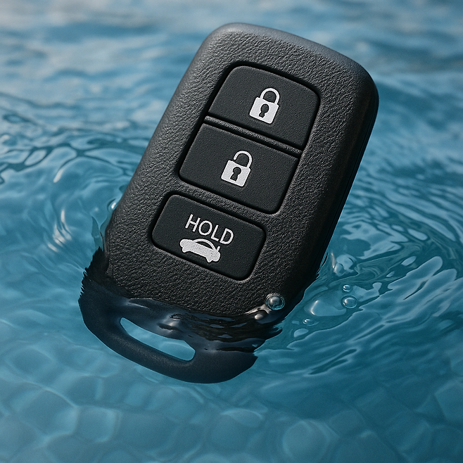 물에 빠진 스마트키를 보고, 작동하는지 확인하려는 조급한 마음에 버튼을 누르는 순간, 당신은 수십만 원을 허공에 날리는 것과 같습니다.