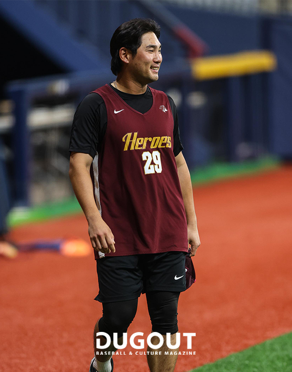 올해 유니폼의 종류가 다양해졌잖아요. 히어로즈 그린, 히어로즈 화이트, 스페셜 유니폼 등 다양하게 입고 있는데, 그 유니폼들을 자주 입다 보니 새로운 시도를 해 보고 싶더라고요. 그리고 색깔을 맞춰서 입으면 기분 전환도 되고, 깔끔해 보여서 ‘깔맞춤’ 스타일을 애용하고 있습니다.