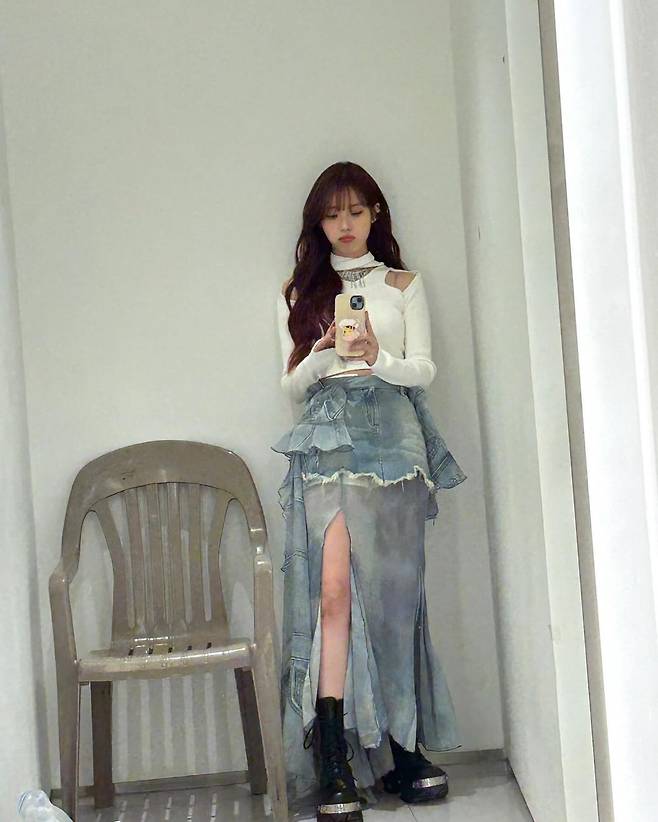 사진 속 아이유는 레이스가 달린 플라워 패턴의 나시 원피스를 입고 러블리한 코디를 선보였다. 또 다른 사진에서는 흰 골지 니트와 언발란스 청치마를, 흰 탑을 이너로 입고 가디건과 카고 청바지를 입고 캐주얼한 코디를 선보이기도 했다.