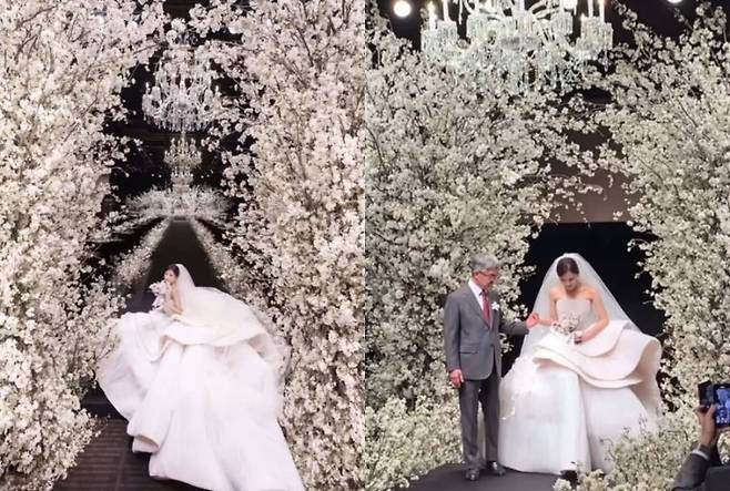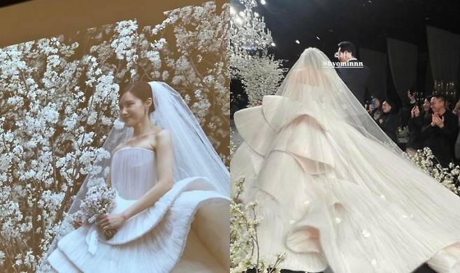 신라호텔에서 진행된 효민 언니의 결혼식은 진짜 화려함 그 자체였대! 🌸🌸🌸 웨딩홀 전체를 벚꽃으로 장식했는데, 버진로드가 진짜 예술이었다는거 있지? 😍 사진 보니까 입이 떡 벌어지더라…😮 이 정도 스케일이면 대체 비용이 얼마나 들었을까? 상상도 안 돼! 💸💸💸 웨딩 케이크도 드레스랑 화관 모티브로 디자인했다는데, 세상 우아하고 고급스러워…💖 효민 언니 센스 진짜 최고! 👍
