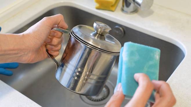 모두 닦은 후 키친타올에 식용유를 조금 발라 문질러 보세요. 잘 닦였는지 확인하는 것이 좋아요.