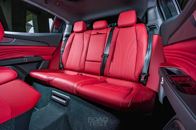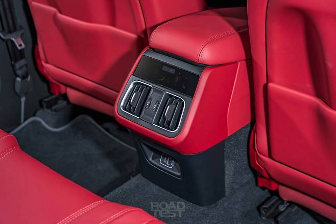 2열 공간은 차급 대비 넉넉하다. 평균 키의 성인 남성이 앉아도 앞 시트와 무릎 사이에 주먹이 2개 이상 들어간다. 헤드룸도 충분하긴 마찬가지. 단 등받이가 약간 서있고, 각도 조절이 불가능하다. 차체 바닥으로 구동축이 지나가는 탓에 센터 터널도 솟았다. 중앙 콘솔에는 2열 전용 송풍구와 온도 조절 디스플레이, USB-A 및 C 타입 단자를 하나씩 마련했다.