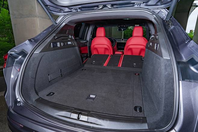 트렁크 용량은 535L. 마칸(488L)보다 47L 더 넓은 적재공간을 지녔다. 뒷좌석 시트는 4:2:4로 나눠 활용성을 높였다. 시트를 접을 땐 트렁크 양쪽 벽에 위치한 레버를 당기거나, 뒷문을 열고 시트 쿠션 아래 레버를 이용하면 된다. 덩치에 걸맞게 2열과 트렁크 모두 여유로워 실용성이 좋다.