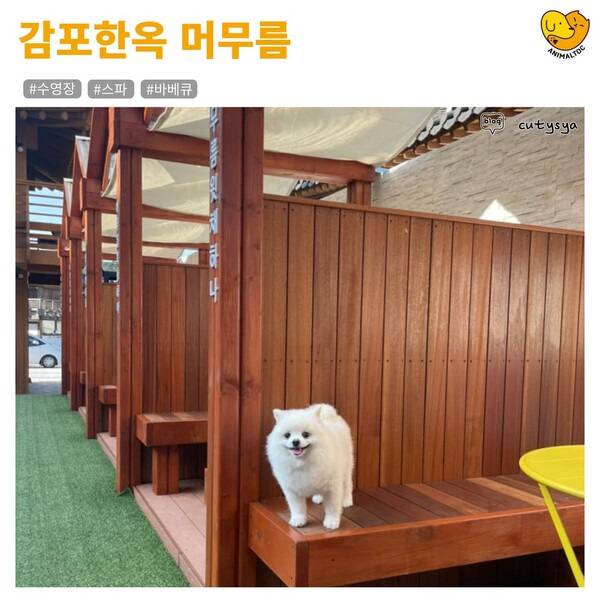 수영장은 여름 한정으로 오후 3시부터 9시까지 이용가능한데 강아지는 입수 불가능 합니다.