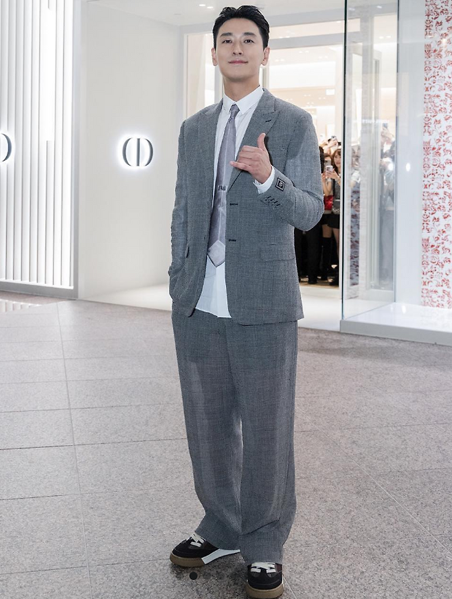 배우 주지훈 님은 그레이 셋업 슈트룩을 착용했는데요. 블레이저 안에는 화이트 셔츠와 라이트한 그레이 컬러의 넥타이로 깔끔하게 매치해 보였어요. 신발은 블랙 스니커즈를 착용해 스타일리시하게 완성했죠. 머리는 깔끔하게 넘겨 스타일링한 모습이더라고요.