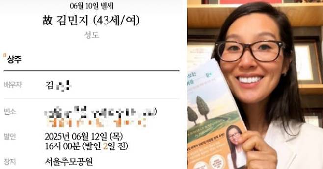 논란이 확산된 다음 날인 6월 10일, 남편이 SNS로 부고를 게시하면서 사망 사실이 알려졌습니다.